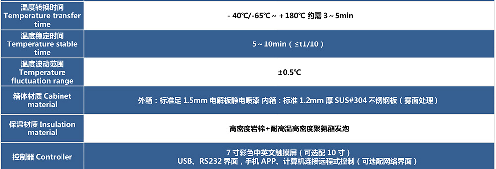 • 三廂式冷熱沖擊試驗(yàn)箱型號命名及參數(shù)表