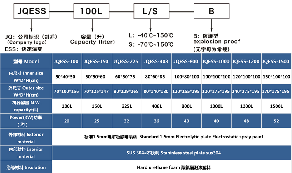 • 快速溫變試驗箱型號命名說明 及 參數(shù)表