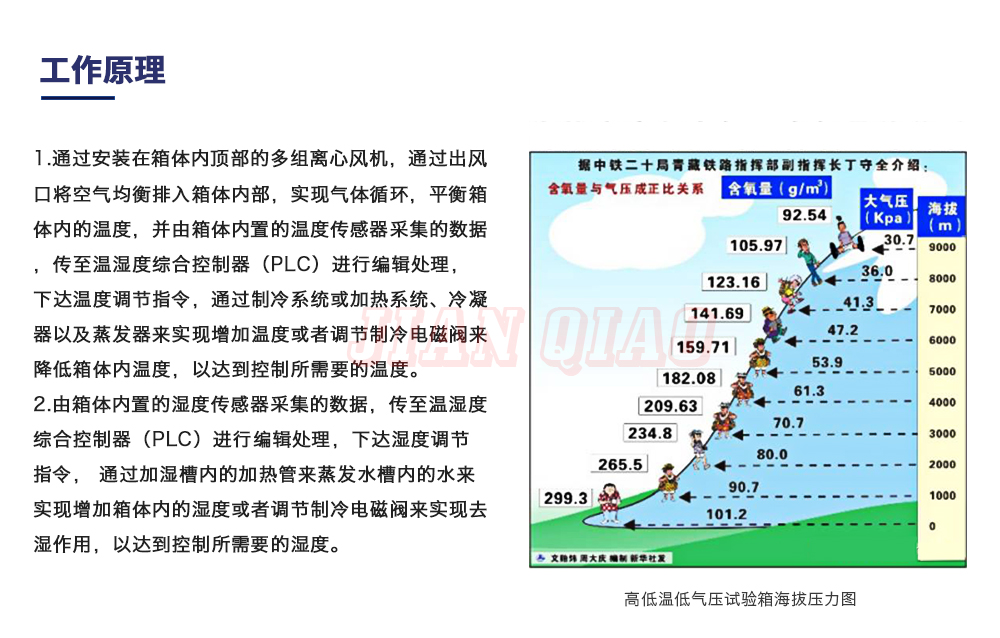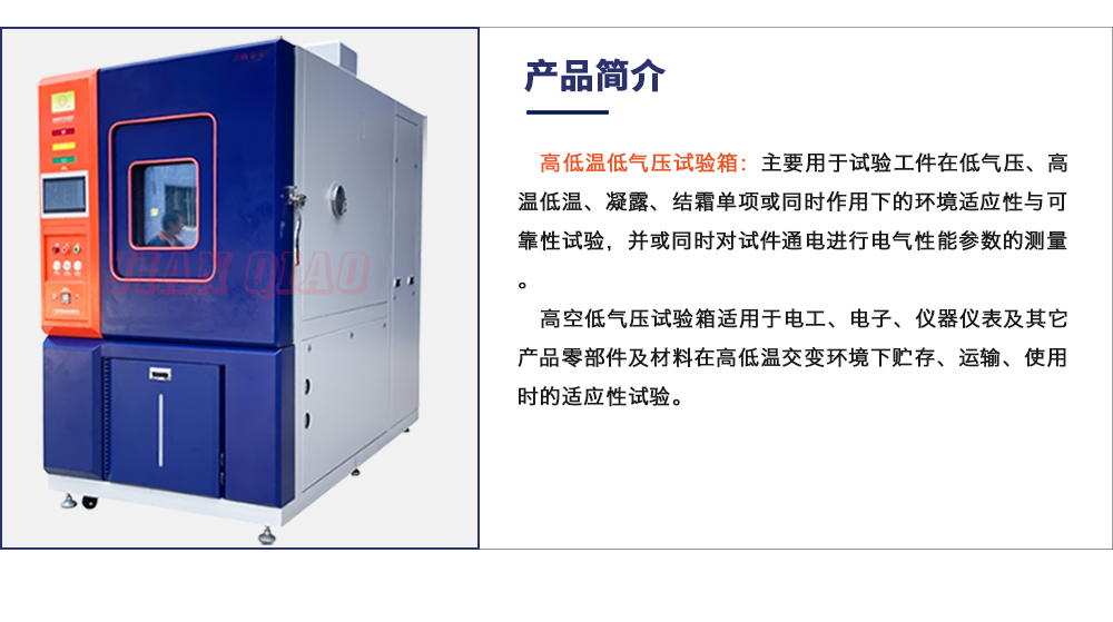 用途:高低溫低氣壓試驗箱:主要用于試驗工件在低氣壓、高溫低溫、凝露、結霜單項或同時作用下的環(huán)境適應性與可靠性試驗,并或同時對試件通電進行電氣性能參數(shù)的測量。