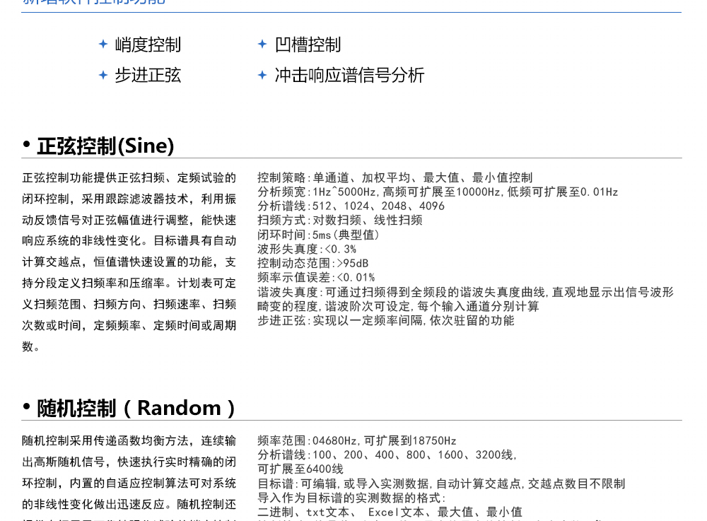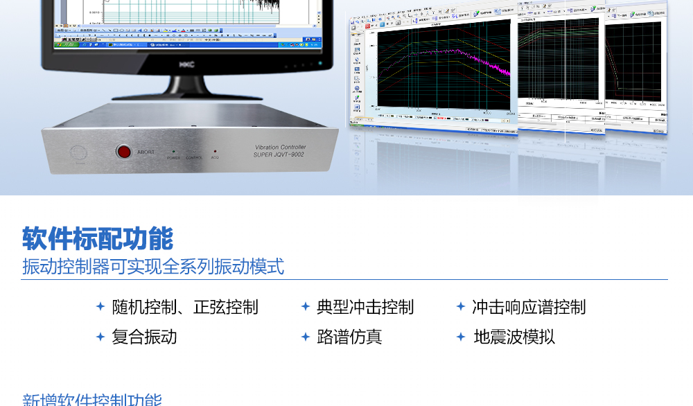 用途:振動控制器可實現全系列振動模式,包括隨機控制、正弦控制,典型沖擊控制、沖擊響應譜控制、復合振動、路譜仿真以及地震波模擬。同時,為了進一步創(chuàng)新振動控制技術,以適應更