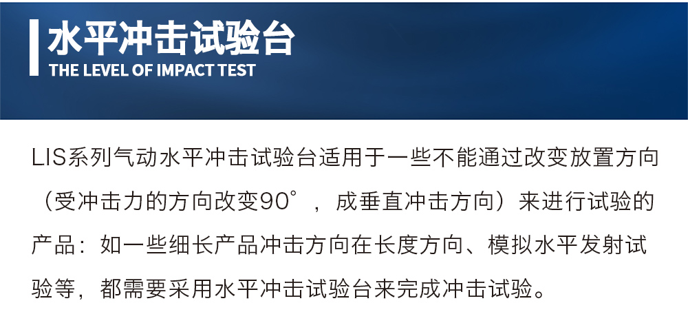 用途:LIS系列氣動(dòng)水平?jīng)_擊試驗(yàn)臺(tái)適用于一些不能通過(guò)改變放置方向(受沖擊力的方向改變90°,成垂直沖擊方向)來(lái)進(jìn)行試驗(yàn)的產(chǎn)品:如一些細(xì)長(zhǎng)產(chǎn)品沖擊方向在長(zhǎng)度方向、模擬水平發(fā)射試驗(yàn)等,都需要采用水平?jīng)_擊試驗(yàn)臺(tái)來(lái)完成沖擊試驗(yàn)